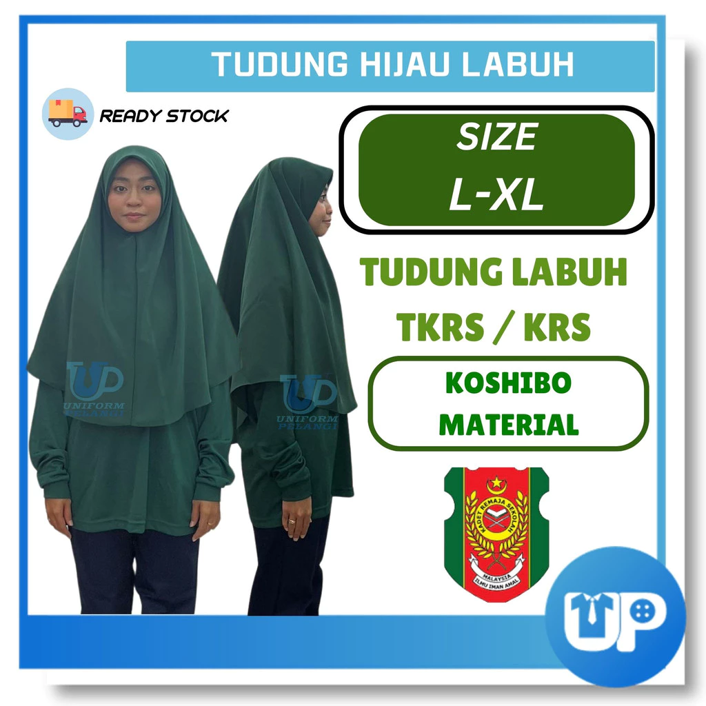 Tudung Labuh KRS TKRS Hijau Gelap Sekolah Licin Tudung Dua Lapis Kokurikulum Sekolah