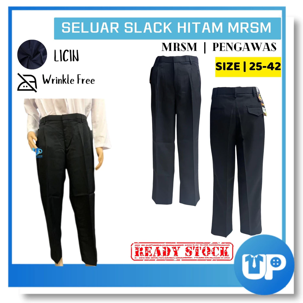 Seluar Slek Hitam Licin MRSM Slack Polyester Kerja Formal Pants Black Trousers Straight Cut 1726