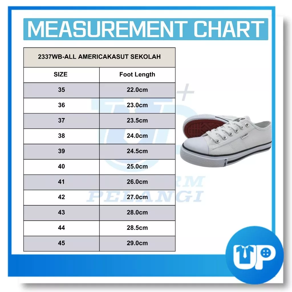 Brand: All America Original Code: 3337AB Status: Original Size: 32 - 45 Gender: Unisex Sesuai: Sekolah Rendah/ Menengah Jenis: Ikat tali Color: Hitam Quality: Good Condition: Brand New ⚠ Due to the different monitor and light effect, the actual color of the item might be slightly different from the color showed on the pictures. ⚠ Please allow 1cm to 2cm measuring deviation due to manual measurement.