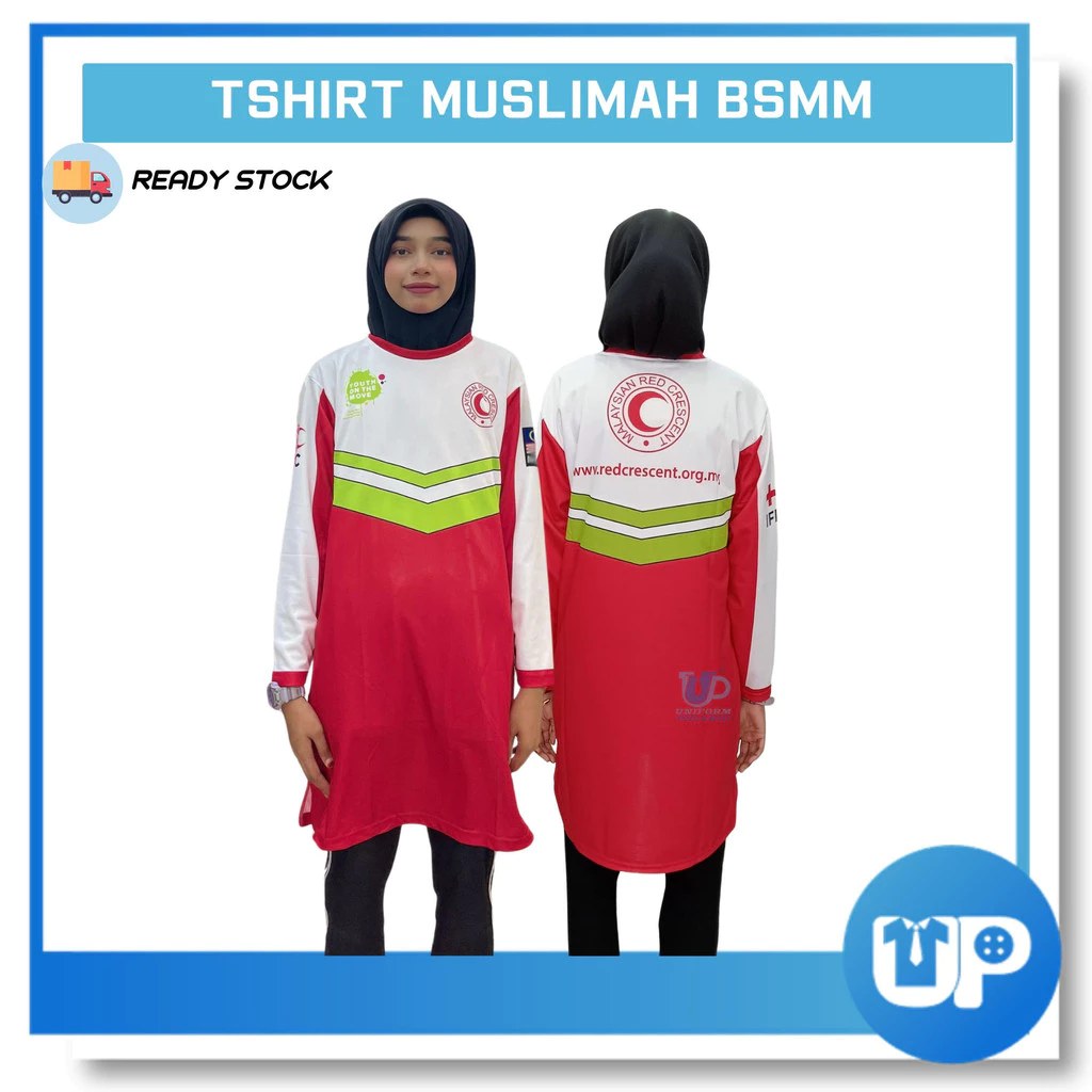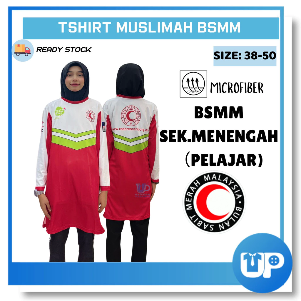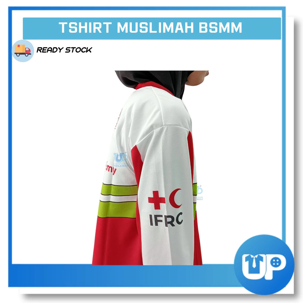 BSMM PBSM Baru Tshirt Muslimah Hijau Bulan Sabit Merah Microfiber Jersey Uniform Sekolah Menengah