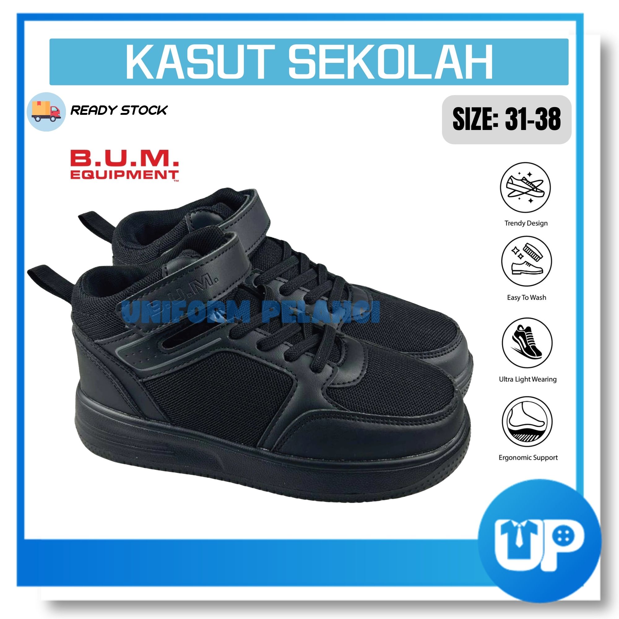 BUM Equipment Unisex Kid's Black Shoes/ Black School Shoe / Kasut Sekolah /Kasut Hitam