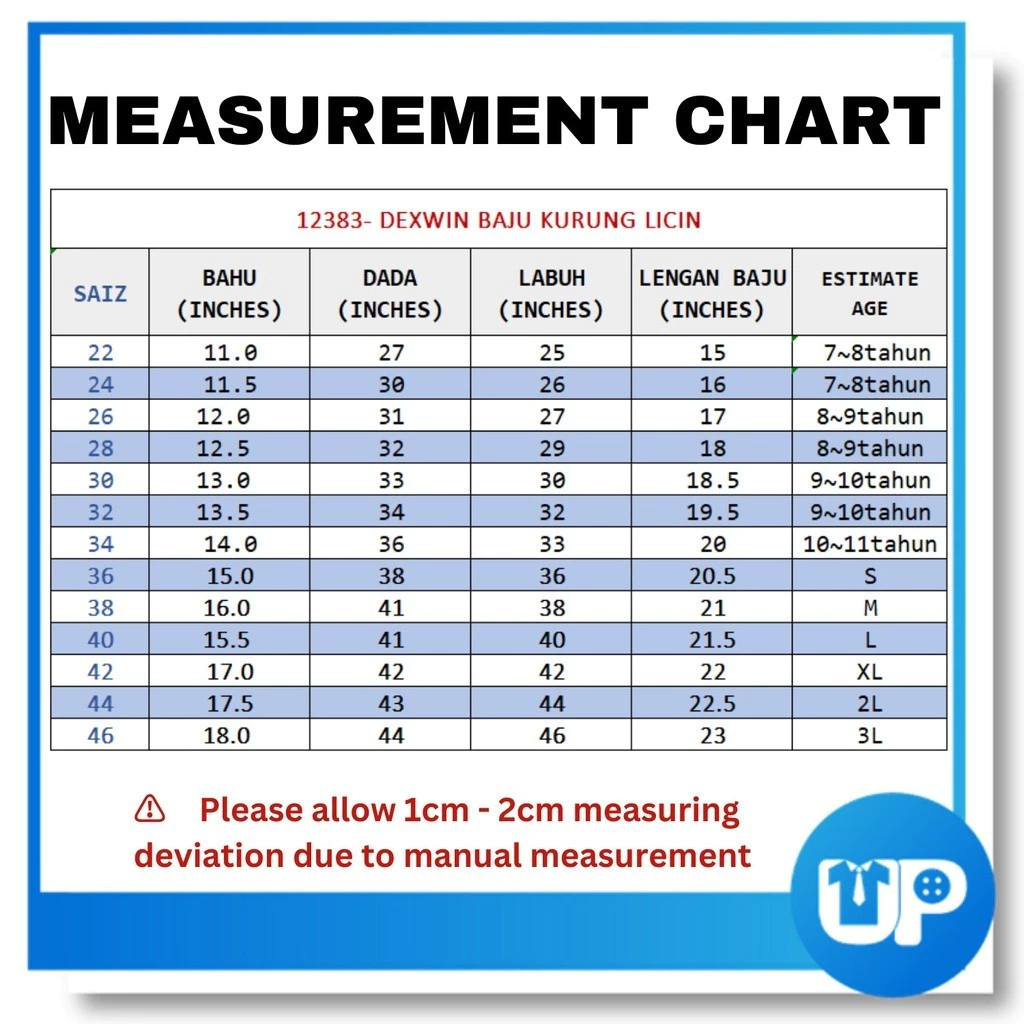 Size: 24 to 46 Code: 12381 Material: Koshibo / Licin Color: Biru Cutting: Regular fit ⚠ Disebabkan perbezaan monitor dan pencahayaan, warna sebenar item mungkin sedikit berbeza daripada yang ditunjukkan dalam gambar. ⚠ Sila benarkan penyimpangan ukuran 1- 2cm / 1-2inci disebabkan oleh pengukuran manually.