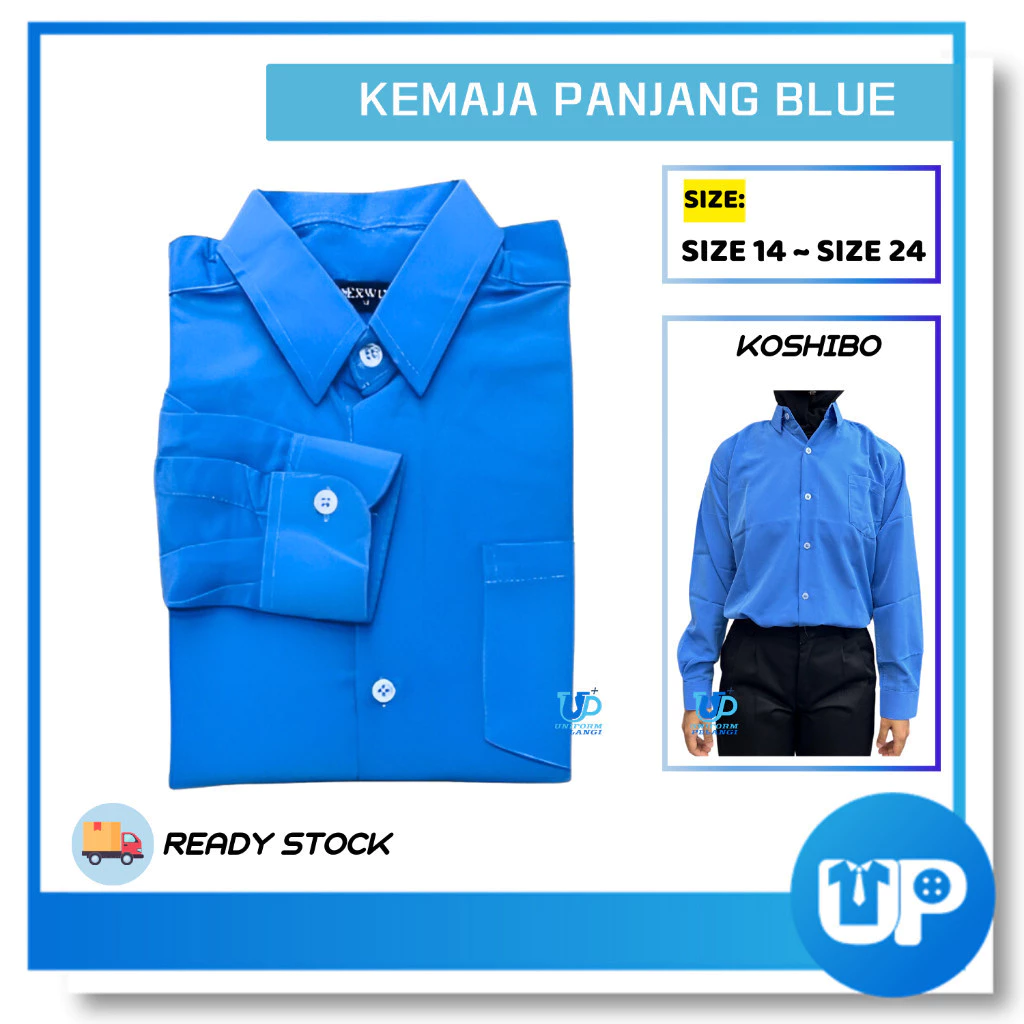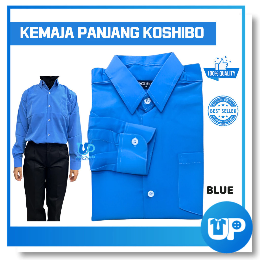 Baju Pengawas Biru Lengan Panjang Sekolah Rendah to Menengah Baju Kemeja Kain Koshibo Licin Dexwin