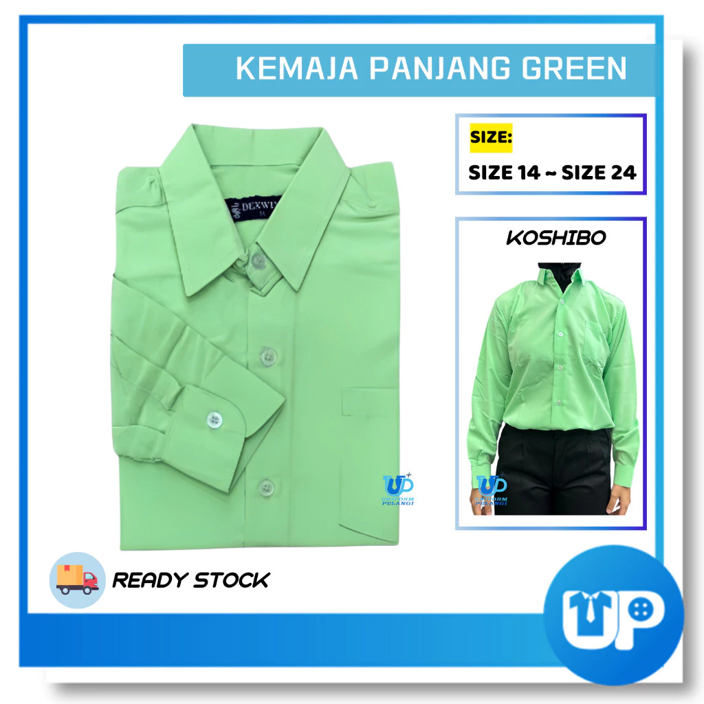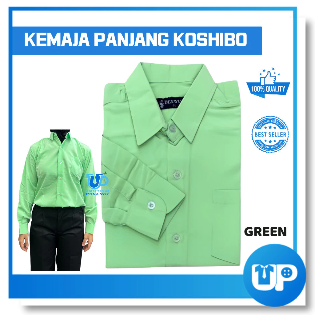Baju Pengawas Hijau Green Lengan Panjang Sekolah Rendah to Menengah Baju Kemeja Kain Koshibo Licin