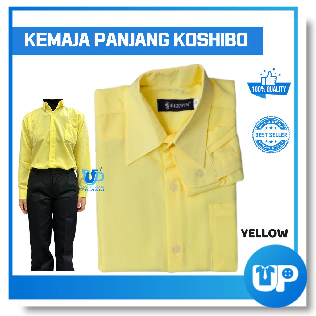 Baju Pengawas Kuning Lengan Panjang Sekolah Rendah to Menengah Baju Kemeja Kain Koshibo Licin Dexwin