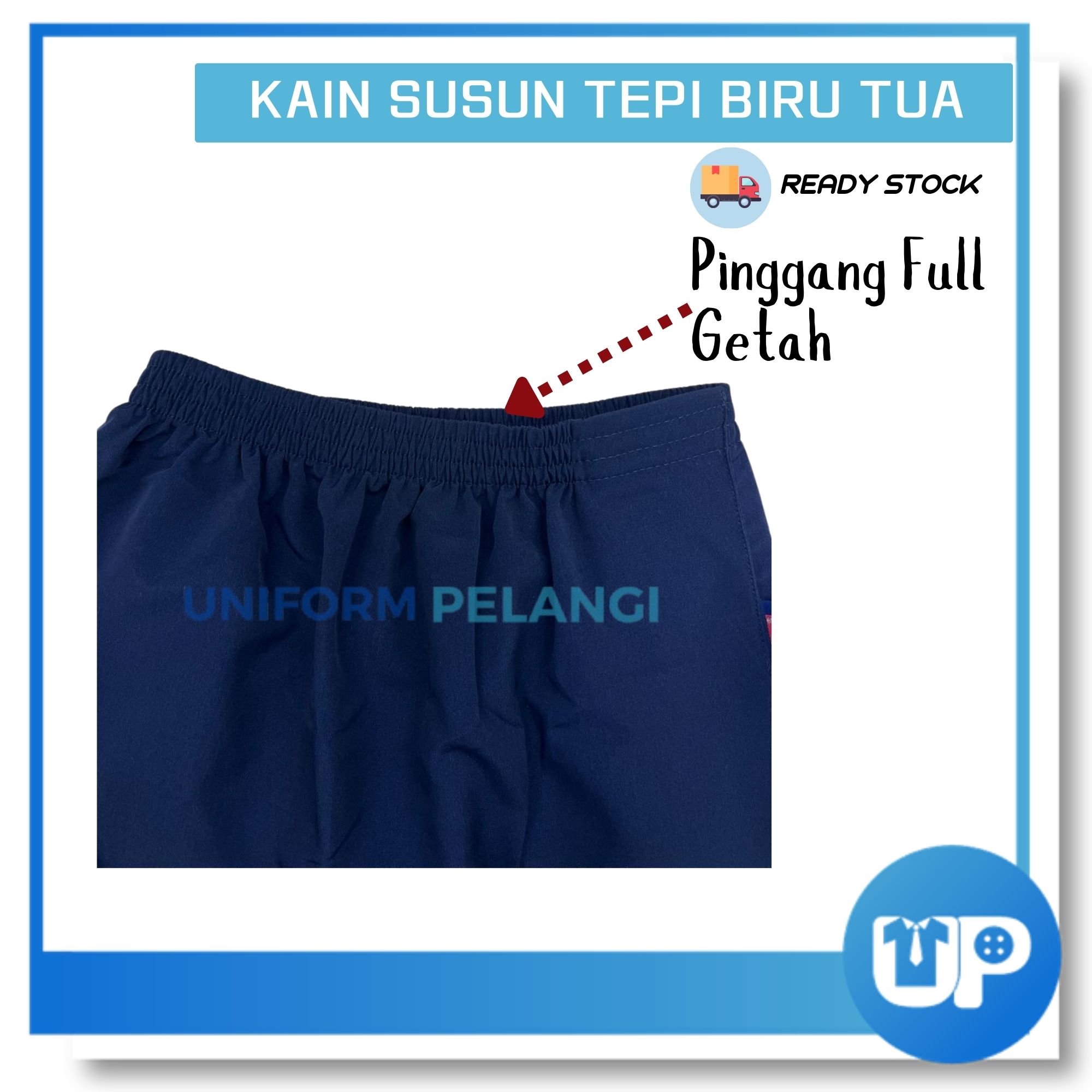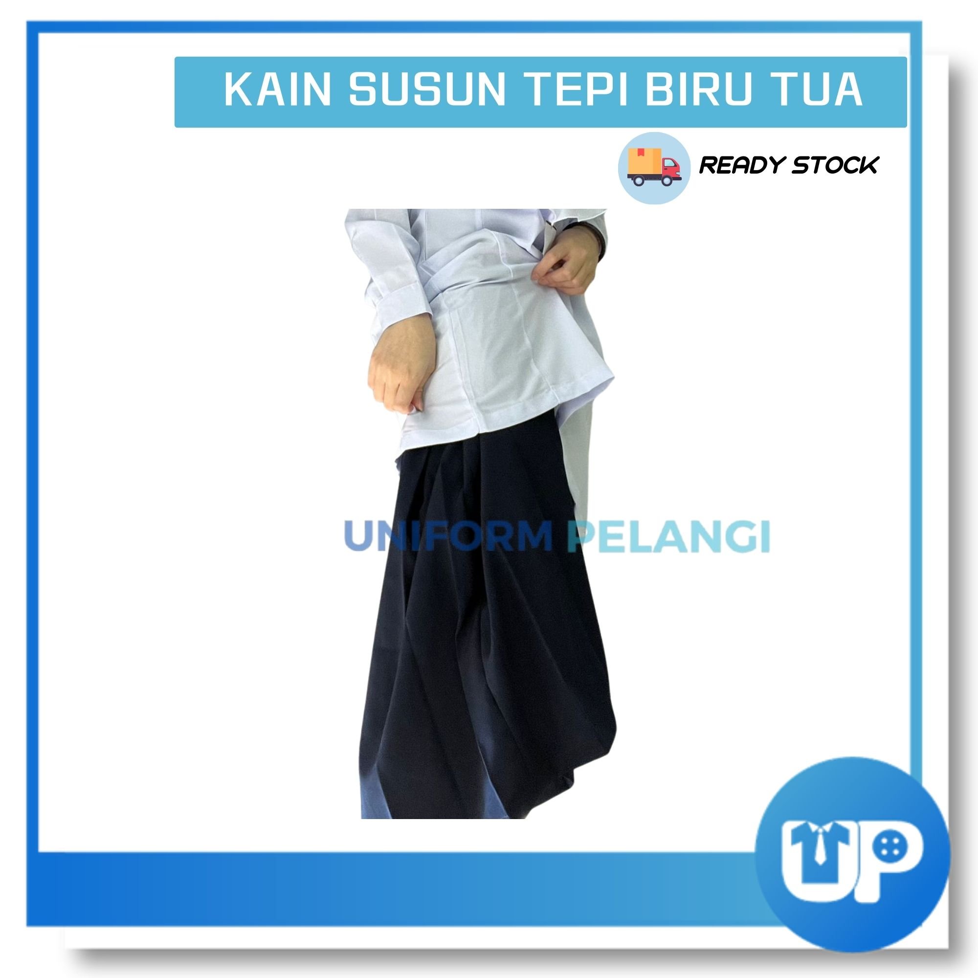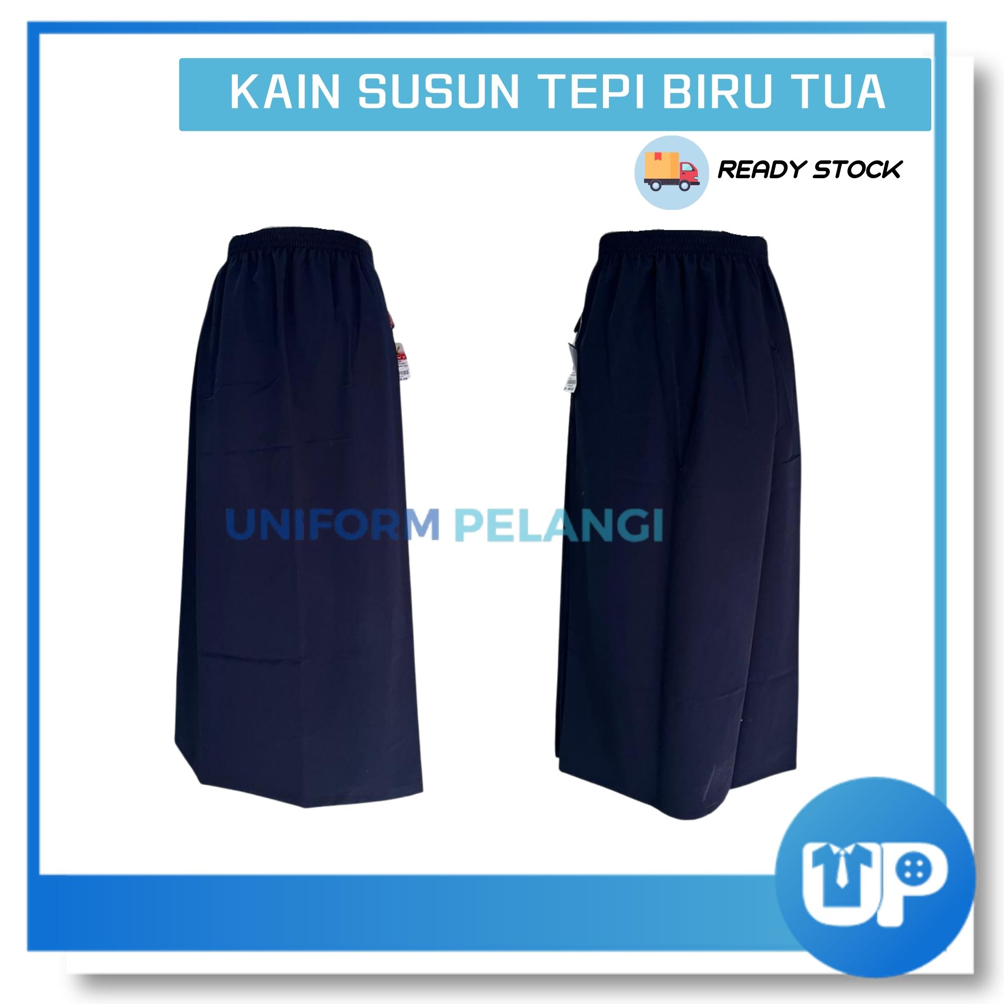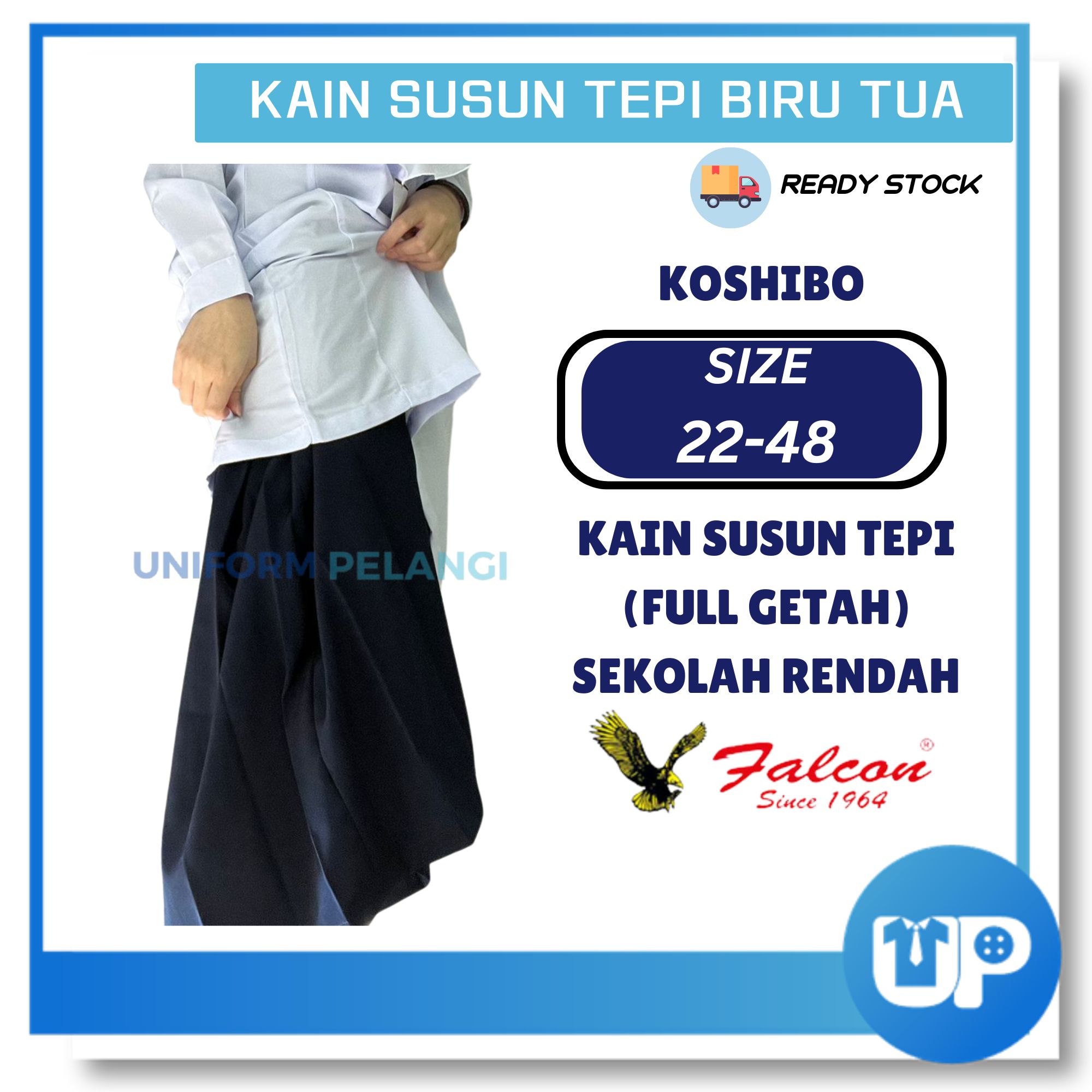 Falcon Kain Susun Tepi Sekolah Rendah Biru Tua Full Bergetah Koshibo Licin Original Uniform Sekolah