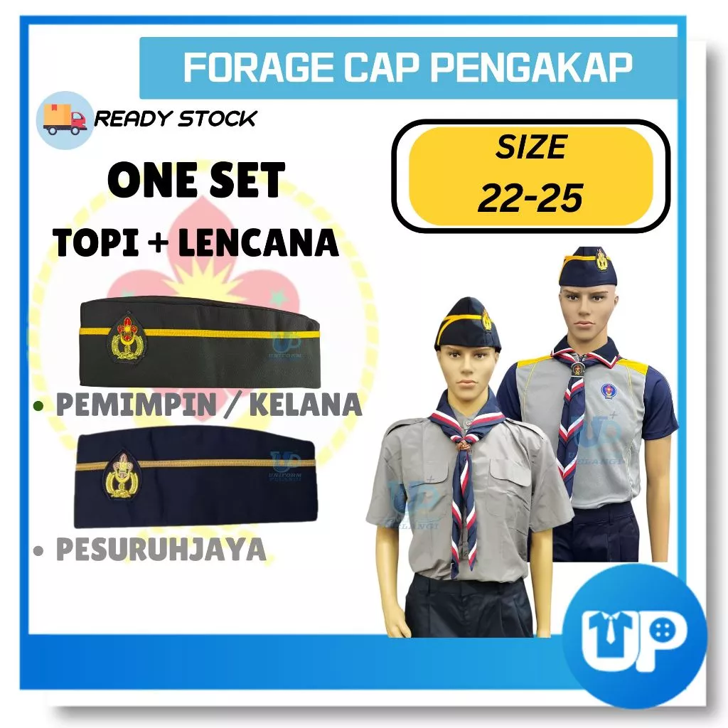 Forage Cap Pengakap Pemimpin Kelana PesuruhjayaTopi (dengan Lencana Topi) Topi Pengakap Set Original