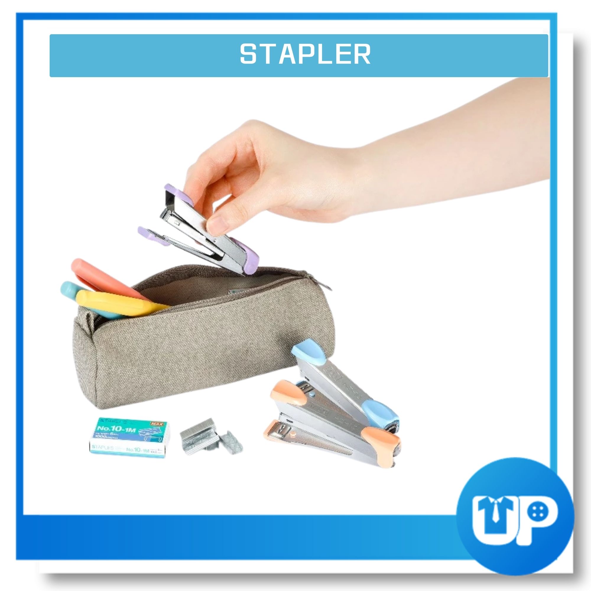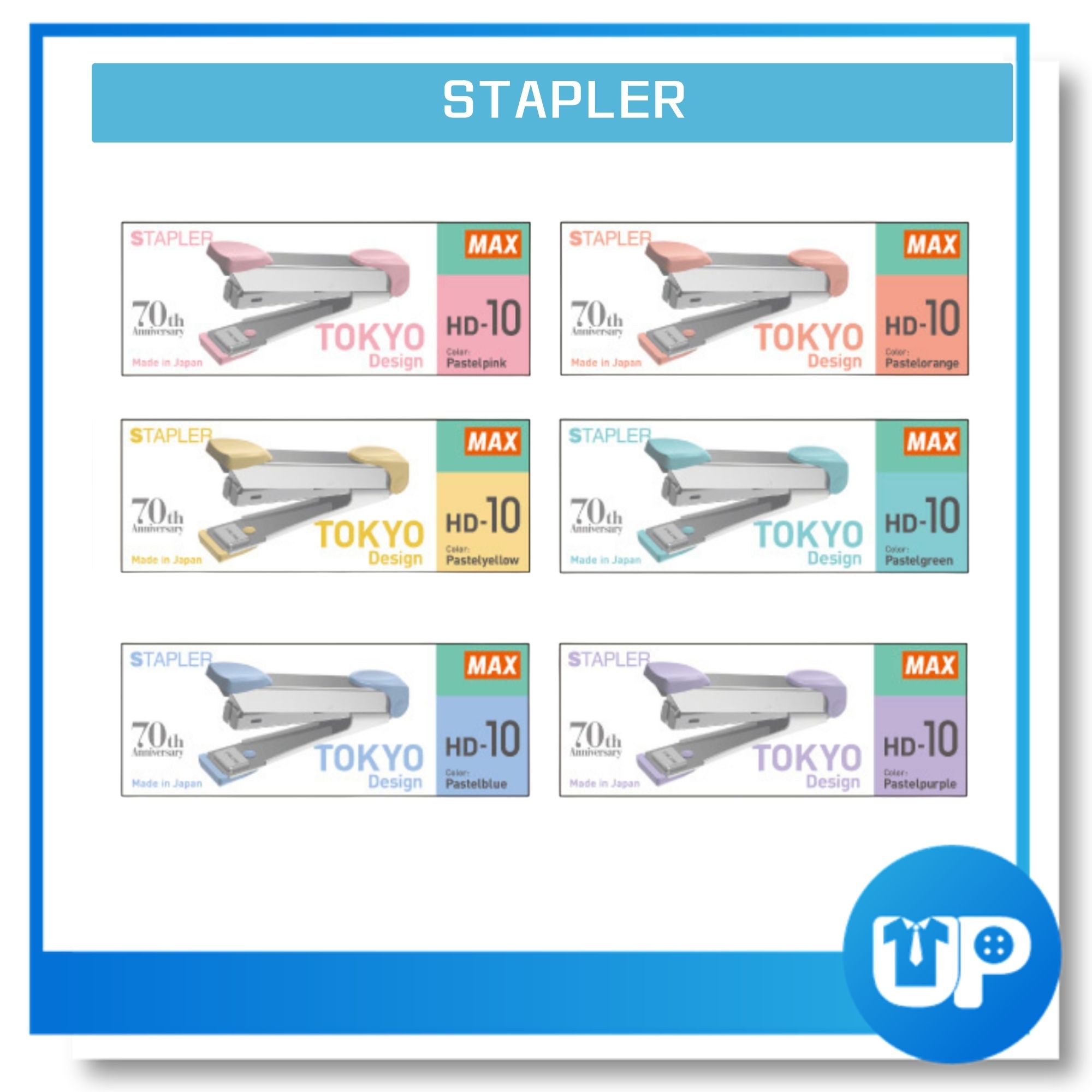 MAX STAPLER HD-10TD2 (4902870867942) -RANDOM COLOR- New standard stapler that incorporates capabilities, tradition and reliability Color theme that evokes Japanese Four seasons Integrates new support cover that fits your fingers and allows comfortable stapling Open and slide loading Conventional clinch Built-in staple removal PRODUCT SPECIFICATIONS: Size (L x W x H): 93 mm x 20 mm x 41 mm Length: 93mm Staple used: No.10-1M Throat depth: 53mm Loading capacity: 50pcs of staples Stapling capacity: 15 sheets (70gsm paper) / 12 sheets (80gsm paper)