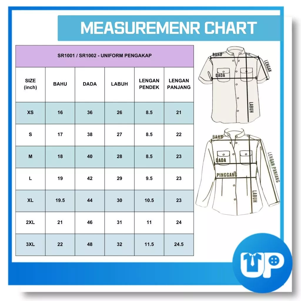 Size: S to XL Code: SR1001TC / SR1002TC Material: Tetron Cotton Color: Grey Category: Pengakap Quality: Good Condition: Brand New ⚠ Disebabkan perbezaan monitor dan pencahayaan, warna sebenar item mungkin sedikit berbeza daripada yang ditunjukkan dalam gambar. ⚠ Sila benarkan penyimpangan ukuran 1- 2cm / 1-162inci disebabkan oleh pengukuran manually.