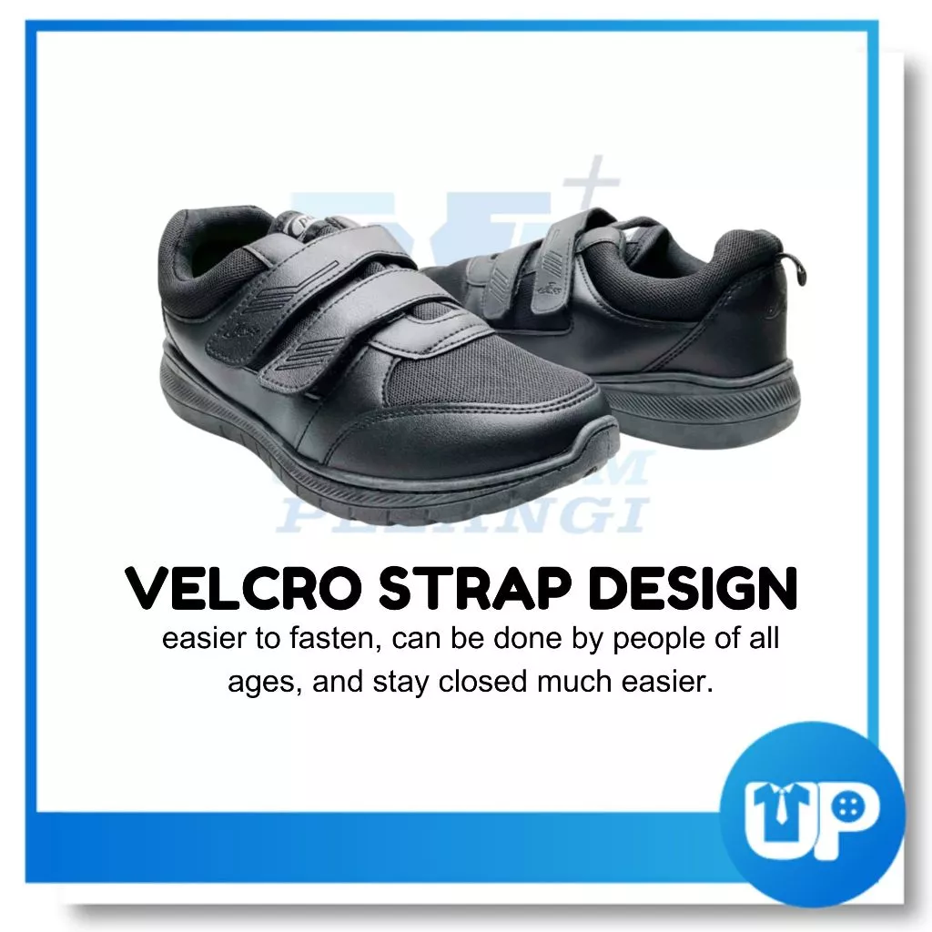 PALLAS Kasut Sekolah Hitam Berlekat Black School Shoe with Double Velcro Straps Canvas 0209BK
