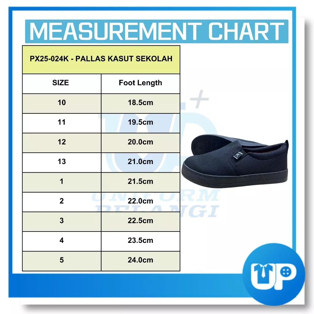 Brand: Pallas Code: 024BK Status: Original Size: 10, 11, 12, 13, 1, 2, 3, 4, 5 Gender: Unisex Sesuai: Tadika/ Sekolah Rendah/ Sekolah Menengah Jenis: Sarung Material: Canvas Color: Hitam FEATURES: 👌Slip On design 👌Canvas Linning for excellent breathability and extra comfort 👌Lightweight with “X-Light” 👌insole cushion with "Arch Support" relieves strain on foot muscles 👌Rubbrt outsole for excellent grip ⚠ Due to the different monitor and light effect, the actual color of the item might be slightly different from the color showed on the pictures. ⚠ Please allow 1cm to 2cm measuring deviation due to manual measurement.