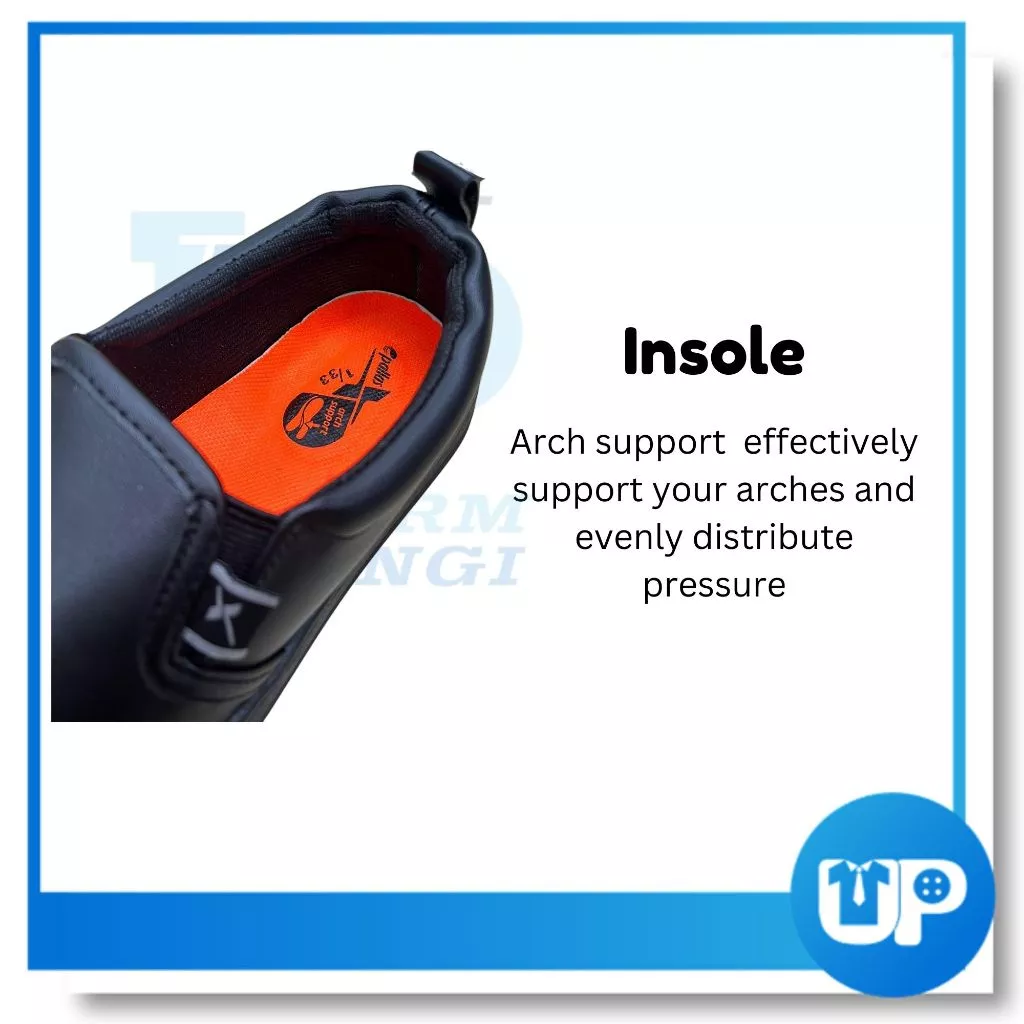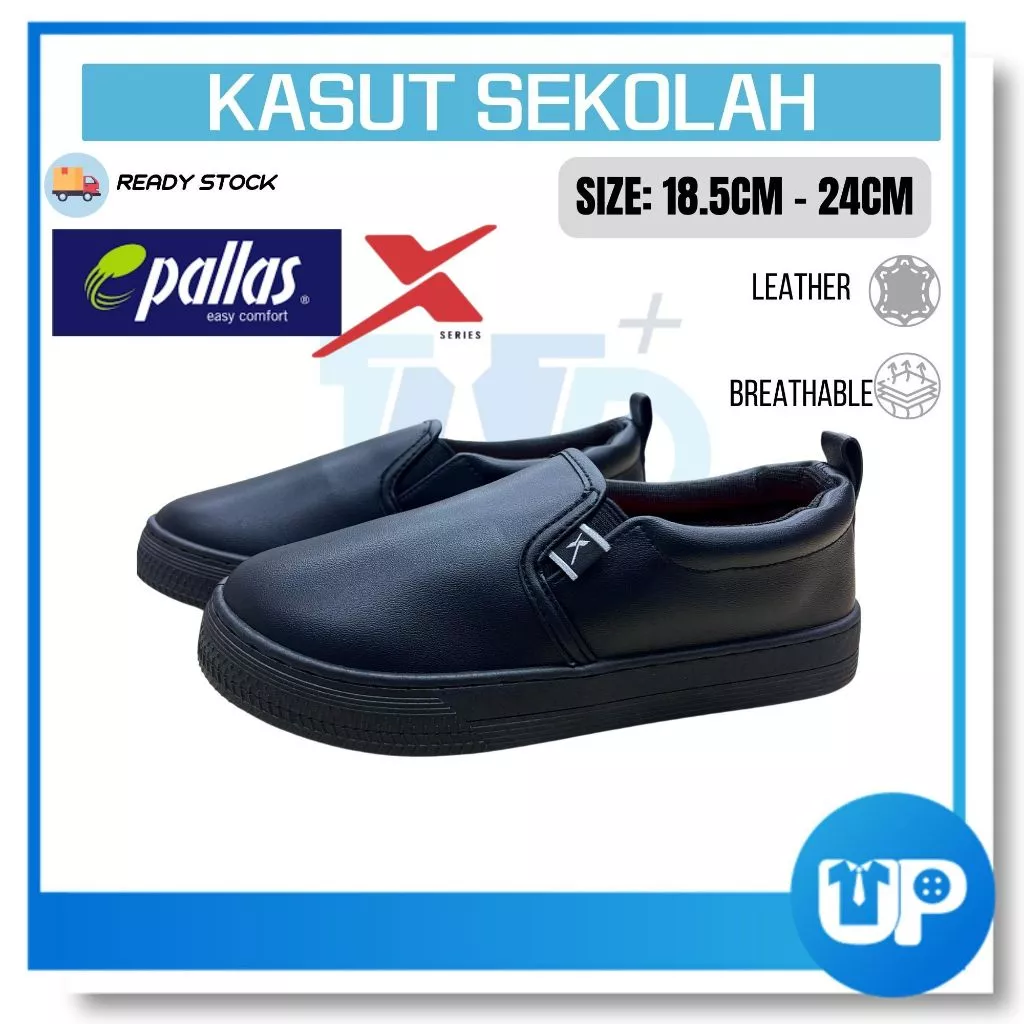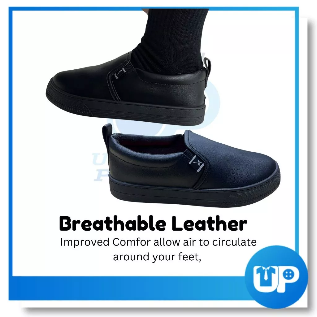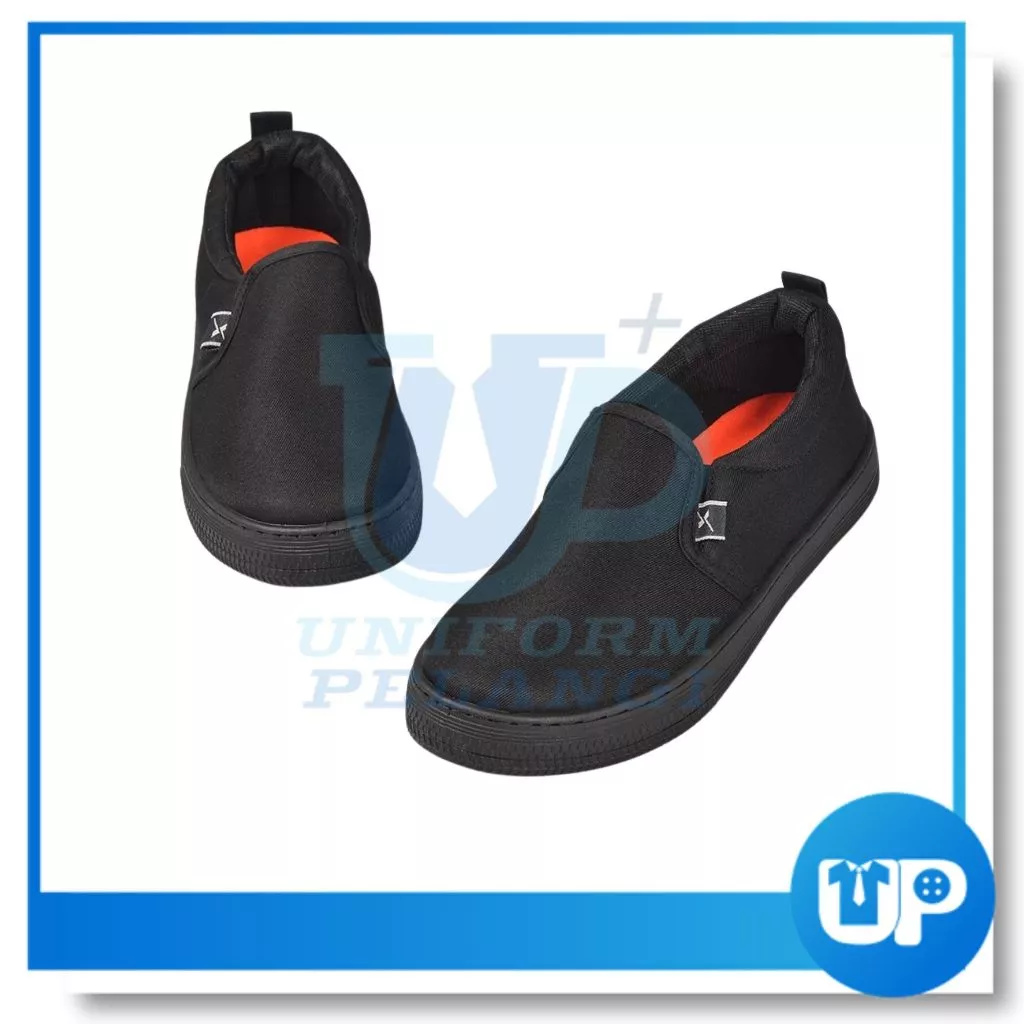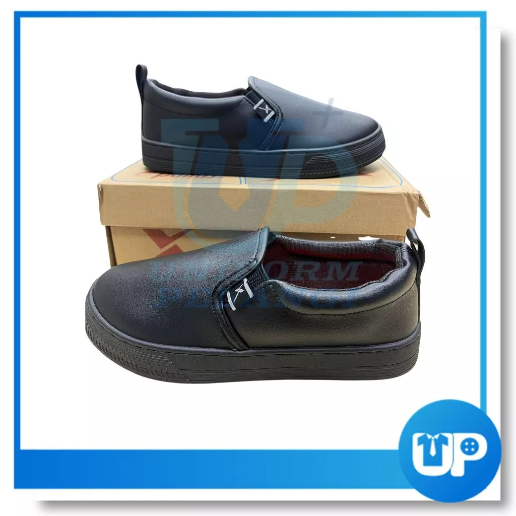 PALLAS X Kasut Sekolah Hitam Sarung Slip On PVC Water Resistant 028BK