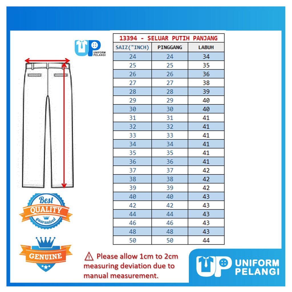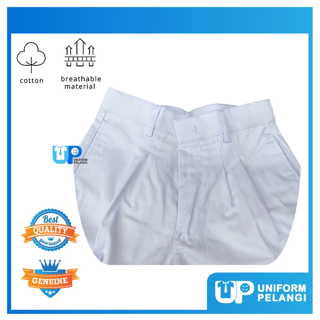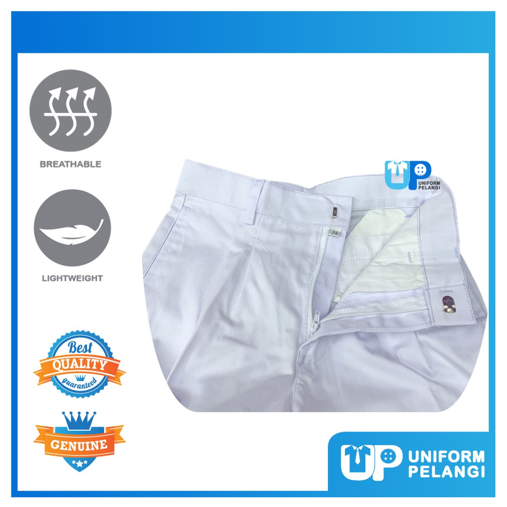 Seluar Panjang Putih Cotton Tidak Getah Sekolah Rendah / Menengah Uniform White School Long Pant