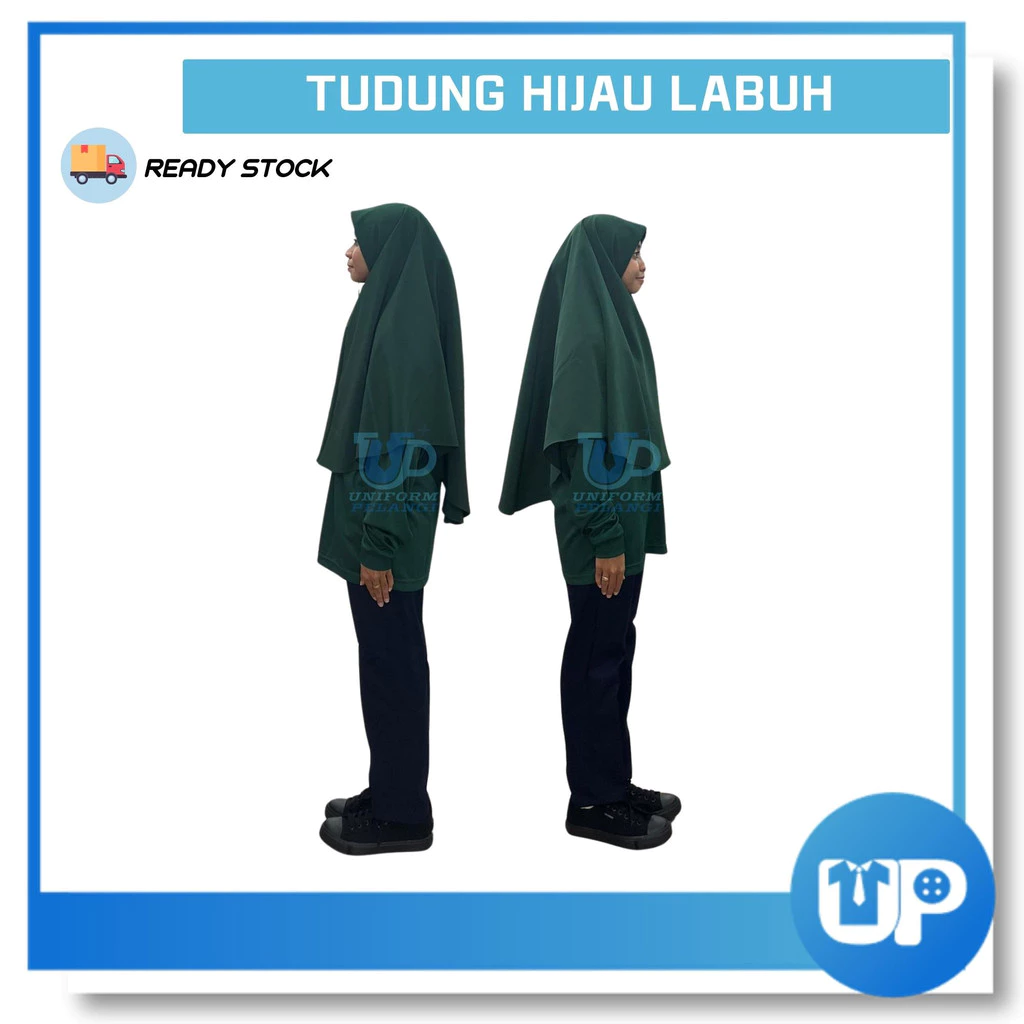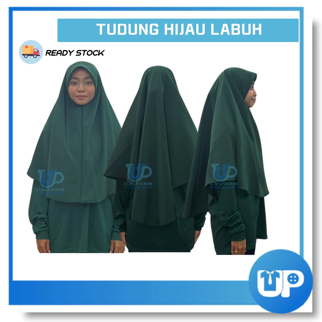 Tudung Labuh KRS TKRS Hijau Gelap Sekolah Licin Tudung Dua Lapis Kokurikulum Sekolah