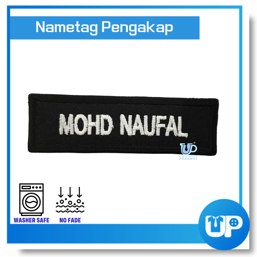 NAME TAG EMBROIDERY PENGAKAP /1PC BACKGROUND COLOR : BLACK WORDING COLOR : WHITE BORDER COLOR : BLACK if needed other color, pls chat with customer service.