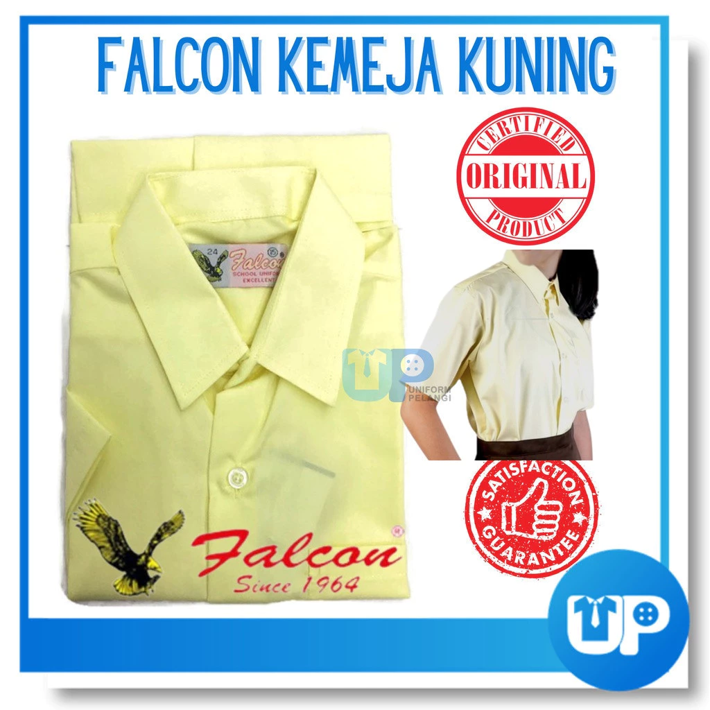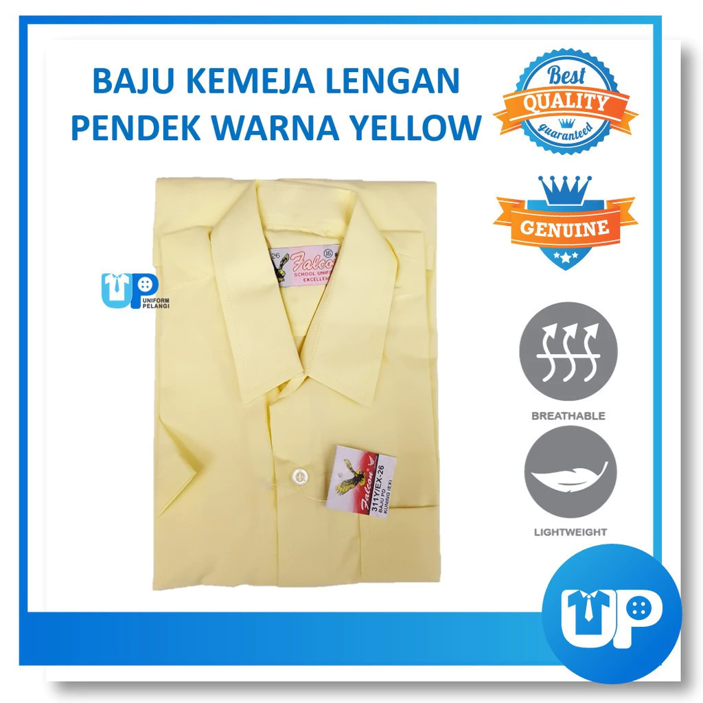FALCON Baju Kemeja Kuning Sekolah Cotton Lengan Pendek Pengawas Sekolah Rendah & Sekolah