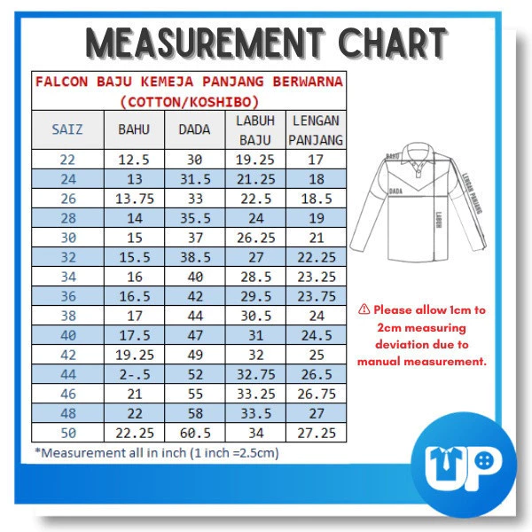 Brand: FALCON Size: 24 to 42 Code: 312B/EX Material: Cotton Color: Beige Design : Lengan Panjang Cutting: Regular fit ⚠ Disebabkan perbezaan monitor dan pencahayaan, warna sebenar item mungkin sedikit berbeza daripada yang ditunjukkan dalam gambar. ⚠ Sila benarkan penyimpangan ukuran 1- 2cm / 1-2inci disebabkan oleh pengukuran manually.