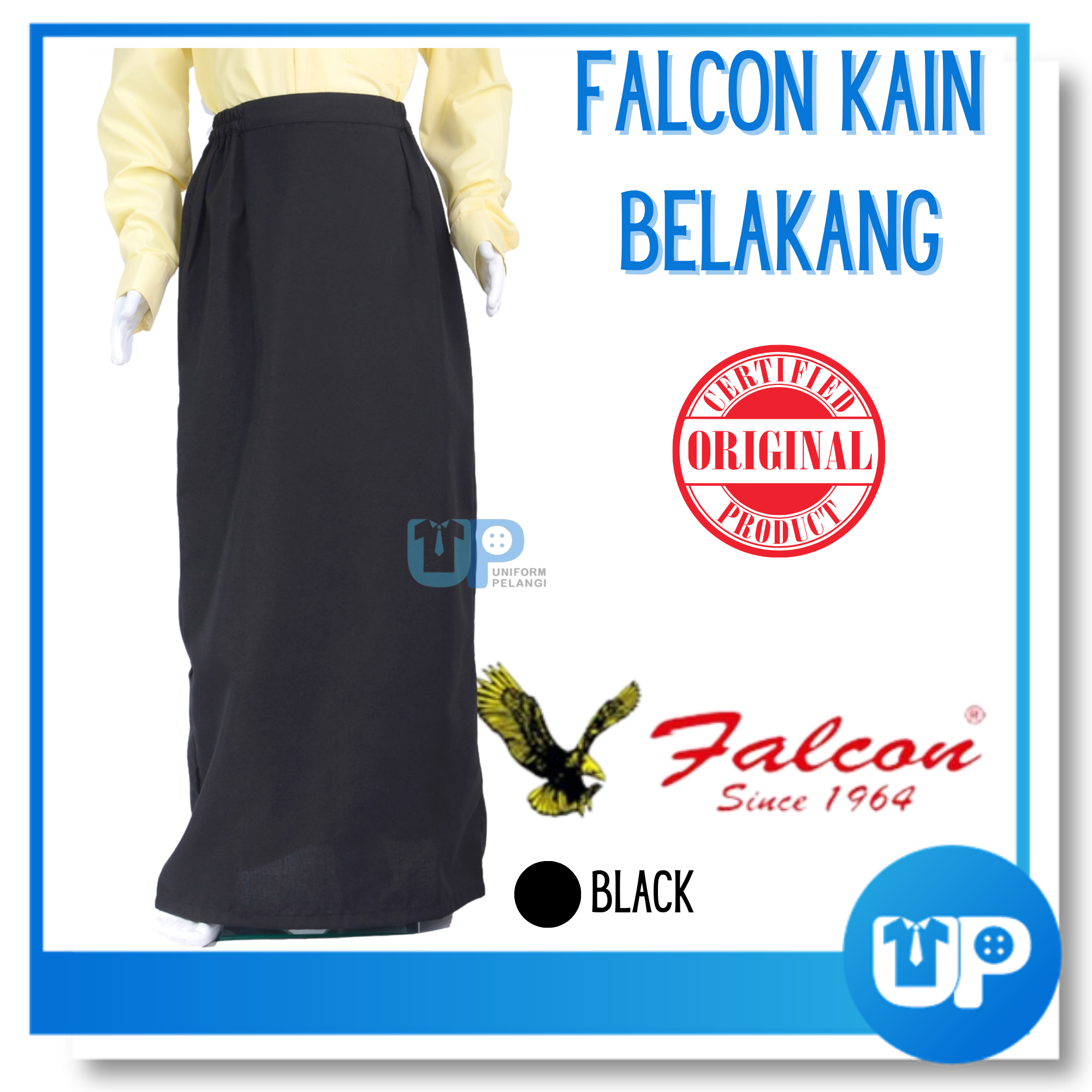 Falcon Kain Kembang Pengawas Kain Kipas Kain susun belakang Warna Hitam Black Bergetah Susun Belakang