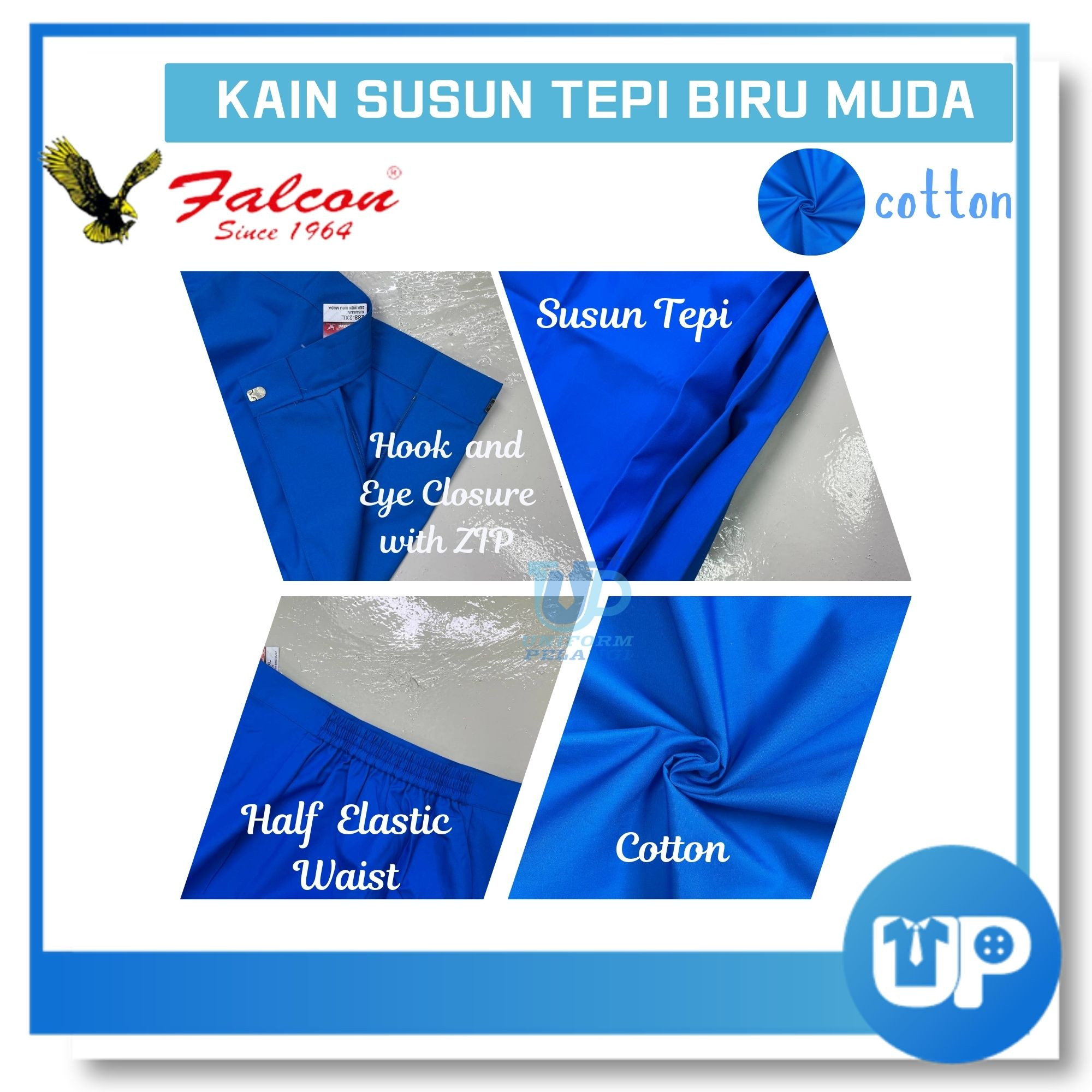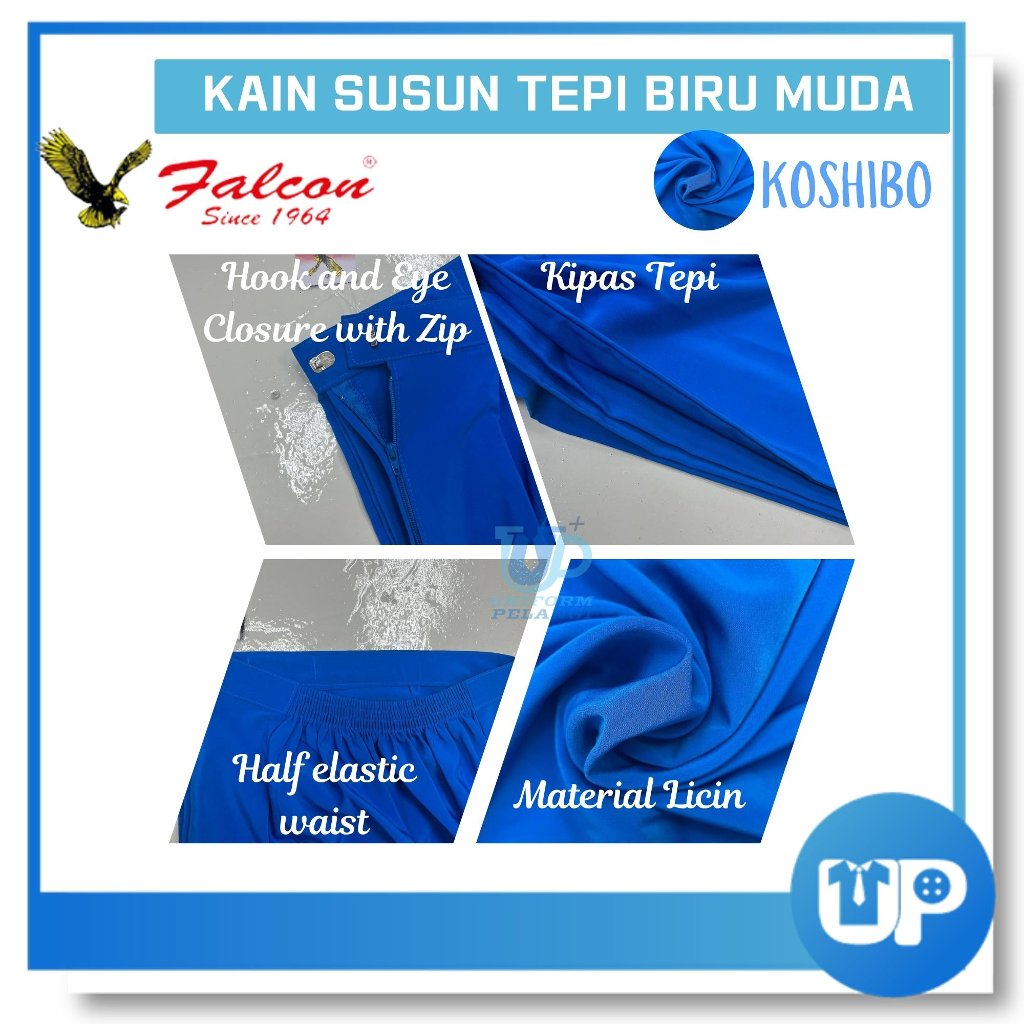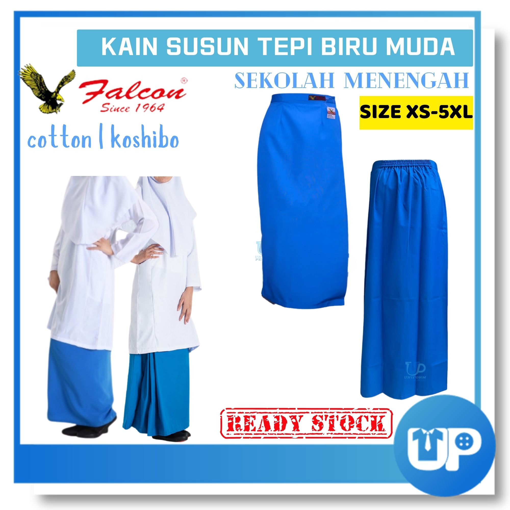 Falcon Kain Sekolah Menengah Kain Susun Biru Muda Zip Tepi Kain Kurung Secondary School Long dress light blue
