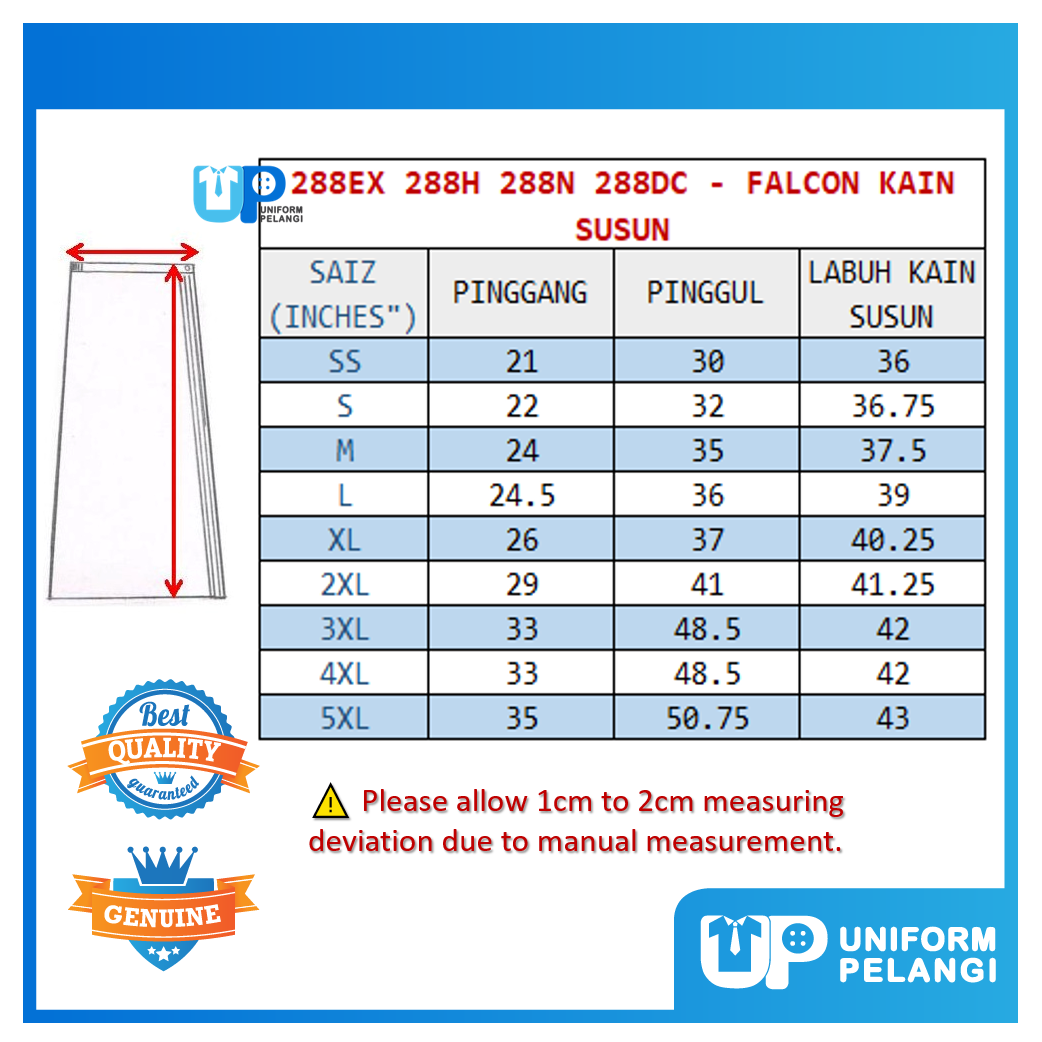 Falcon Kain Susun Coklat Sekolah Menengah Cotton School Uniform