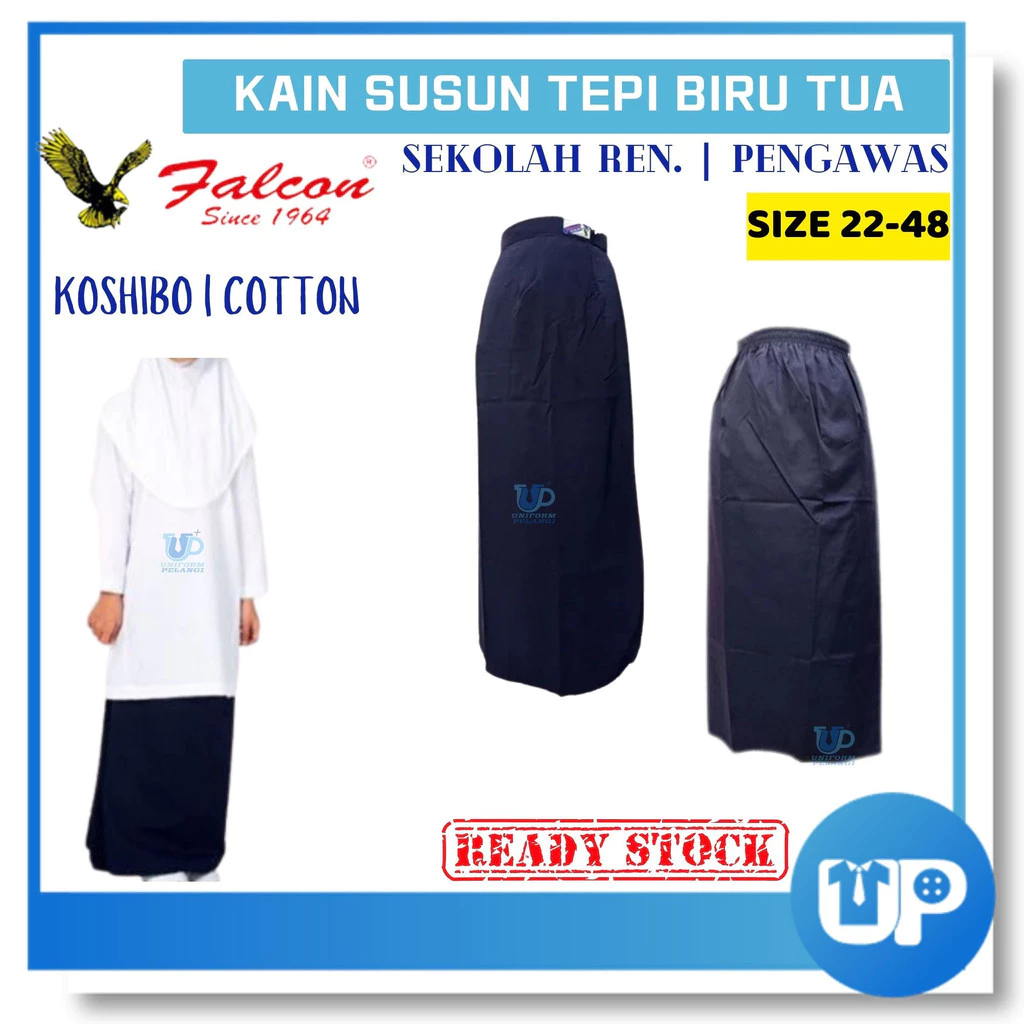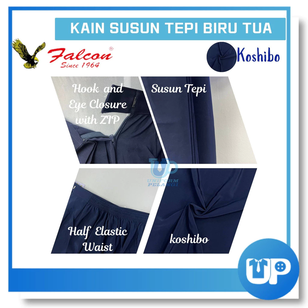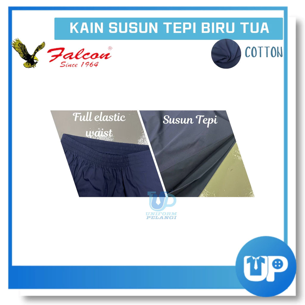 Falcon Kain Susun Sekolah Rendah Biru Tua Susun Tepi Bergetah COTTON | KOSHIBO Original ZK68 108EX