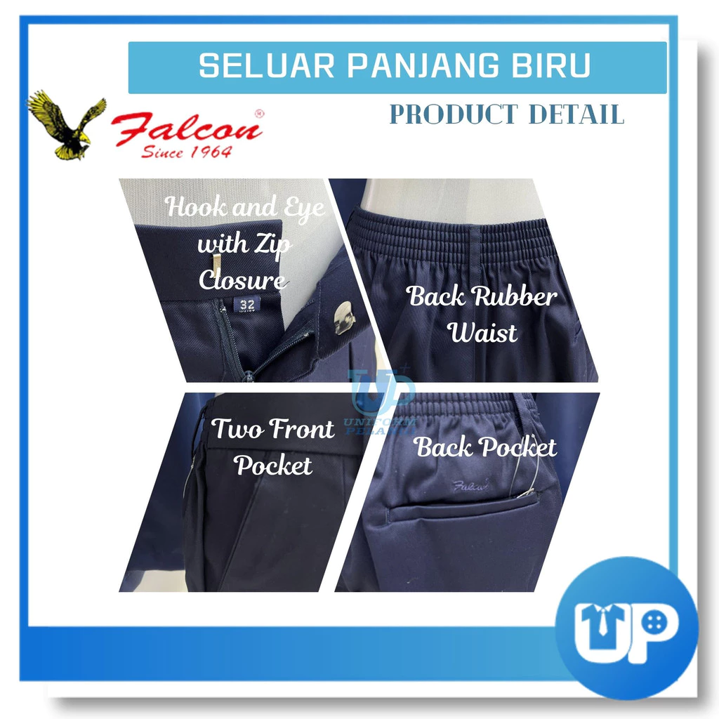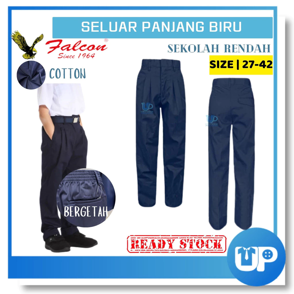 Falcon Seluar Panjang Sekolah Rendah Biru Tua Getah Primary School Long Pants Dark Blue Original