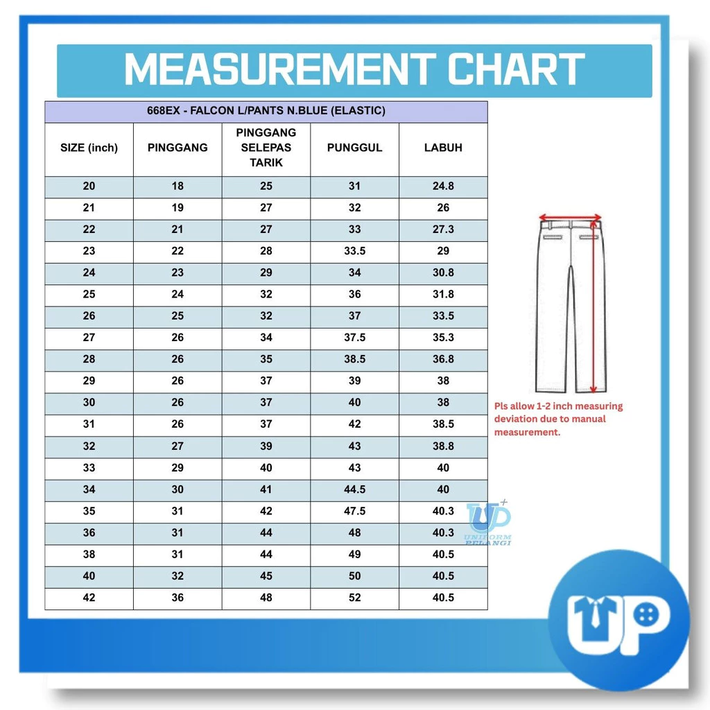 Brand: Falcon Code: 668EX Color: Biru Tua Size: 20 - 42 Material: T/Cotton ZIP: YKK Pinggang: Getah Quality: Premium Condition: New ⚠ Disebabkan perbezaan monitor dan pencahayaan, warna sebenar item mungkin sedikit berbeza daripada yang ditunjukkan dalam gambar. ⚠ Sila benarkan penyimpangan ukuran 1- 2cm / 1-2inci disebabkan oleh pengukuran manually.