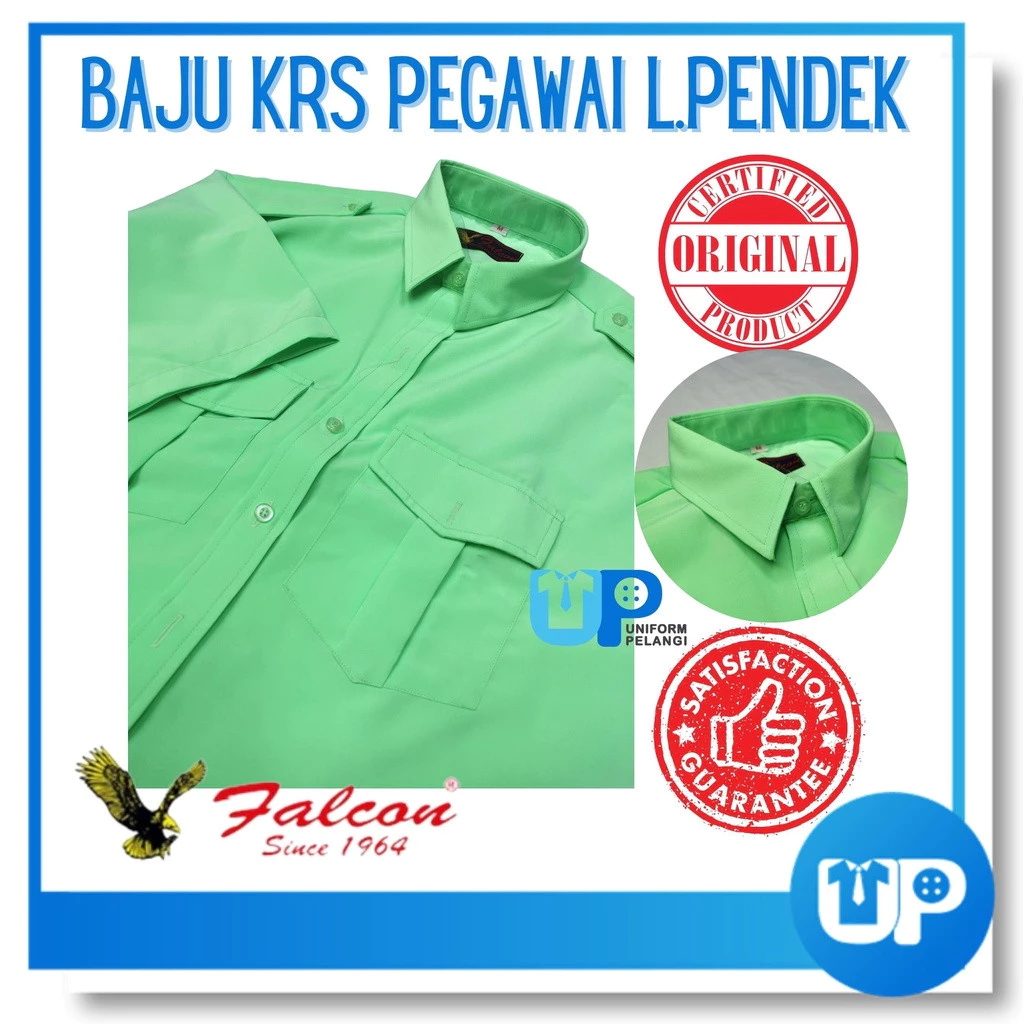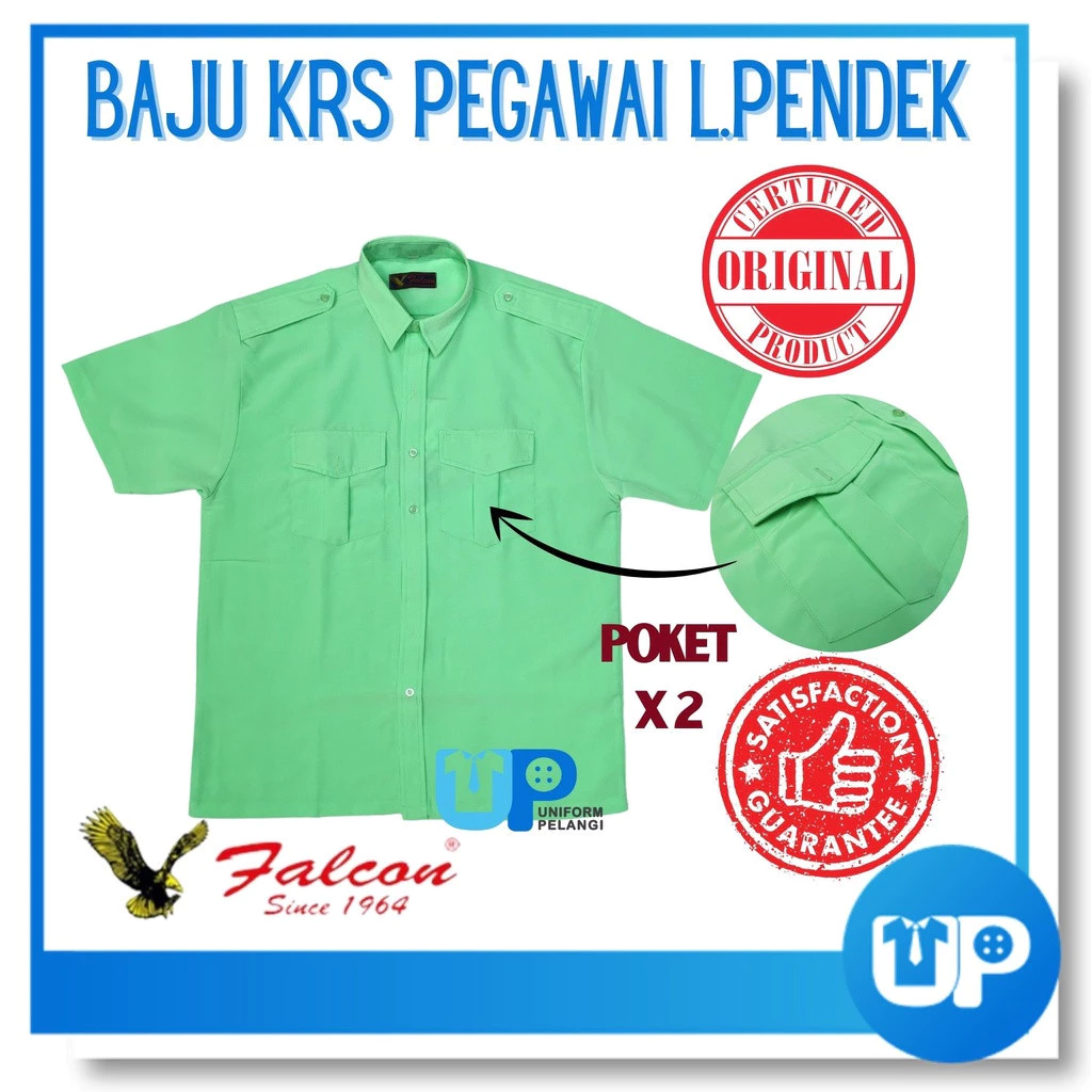 Falcon Uniform Kemeja KRS NO3 Pemimpin Pegawai Lengan Pendek Hijau Kain Licin Kadet Uniform