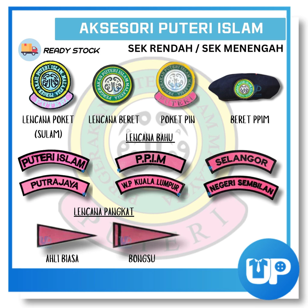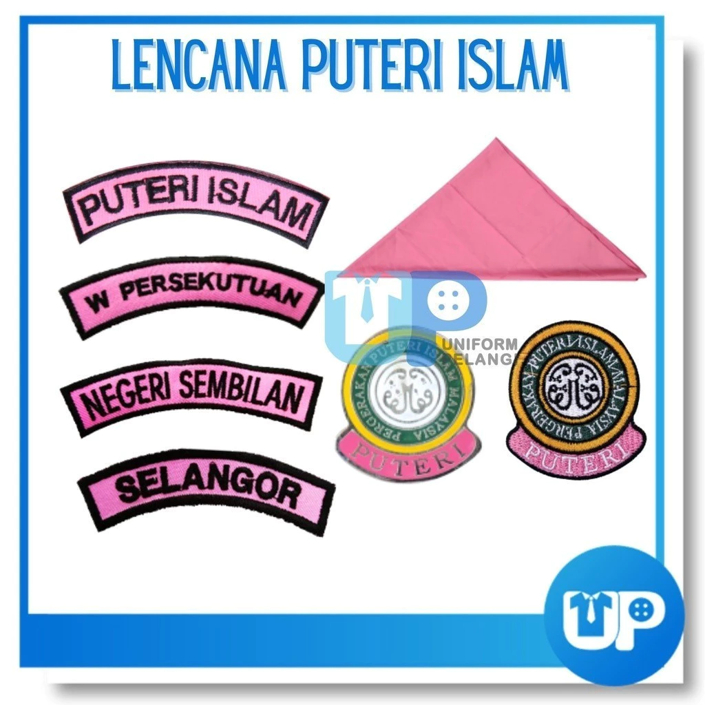 PUTERI ISLAM Lencana / Badges / Accessories / Embroidery Kokurikulum 1 - Lencana Bahu Puteri Islam -1pcs 2 - Lencana Bahu Selangor/Negeri Sembilan/ W persekutuan / PUTRAJAYA -1pcs 3 - Lencana Poket Sulam -1pcs 4 - Poket Pin -1pcs 5.-Lencana Bahu P.P.I.M -1pcs 6.-Pangkat -1pcs 7.-Beret Sulam Lencana -1pcs ⚠ Disebabkan perbezaan monitor dan pencahayaan, warna sebenar item mungkin sedikit berbeza daripada yang ditunjukkan dalam gambar. ⚠ Sila benarkan penyimpangan ukuran 1- 2cm / 1-5inci disebabkan oleh pengukuran manually.