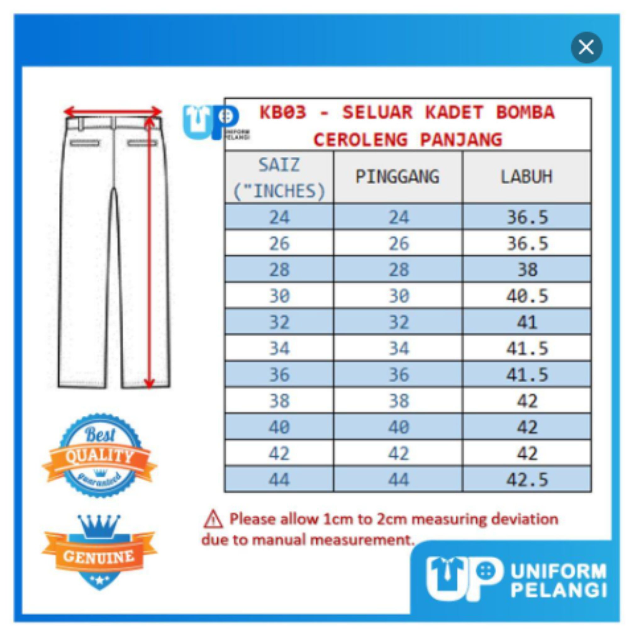 Size: 26-44 Code: KB03 Material: Cotton TC Length: Full length ⚠ Disebabkan perbezaan monitor dan pencahayaan, warna sebenar item mungkin sedikit berbeza daripada yang ditunjukkan dalam gambar. ⚠ Sila benarkan penyimpangan ukuran 1- 2cm / 1-2inci disebabkan oleh pengukuran manual.
