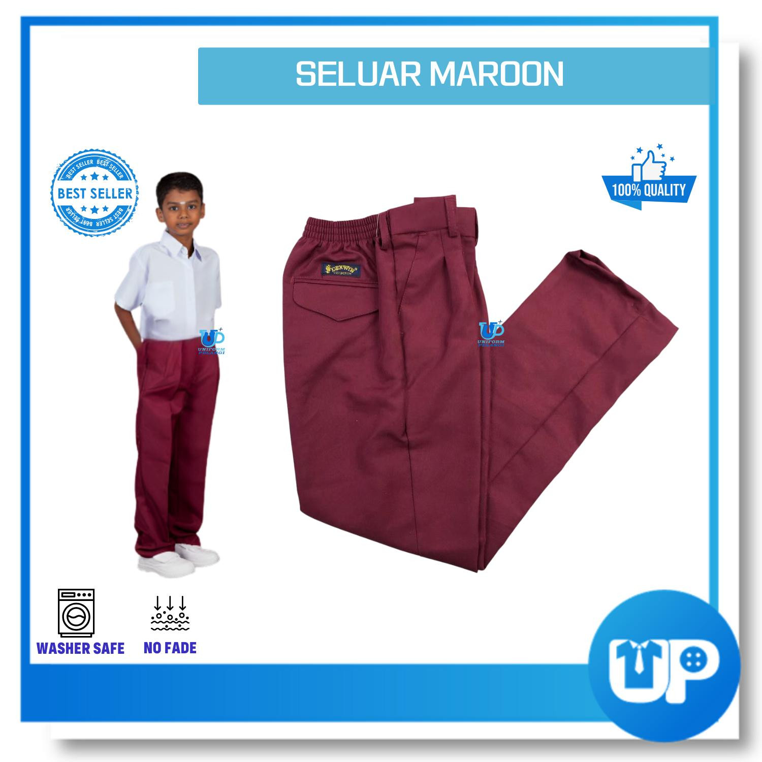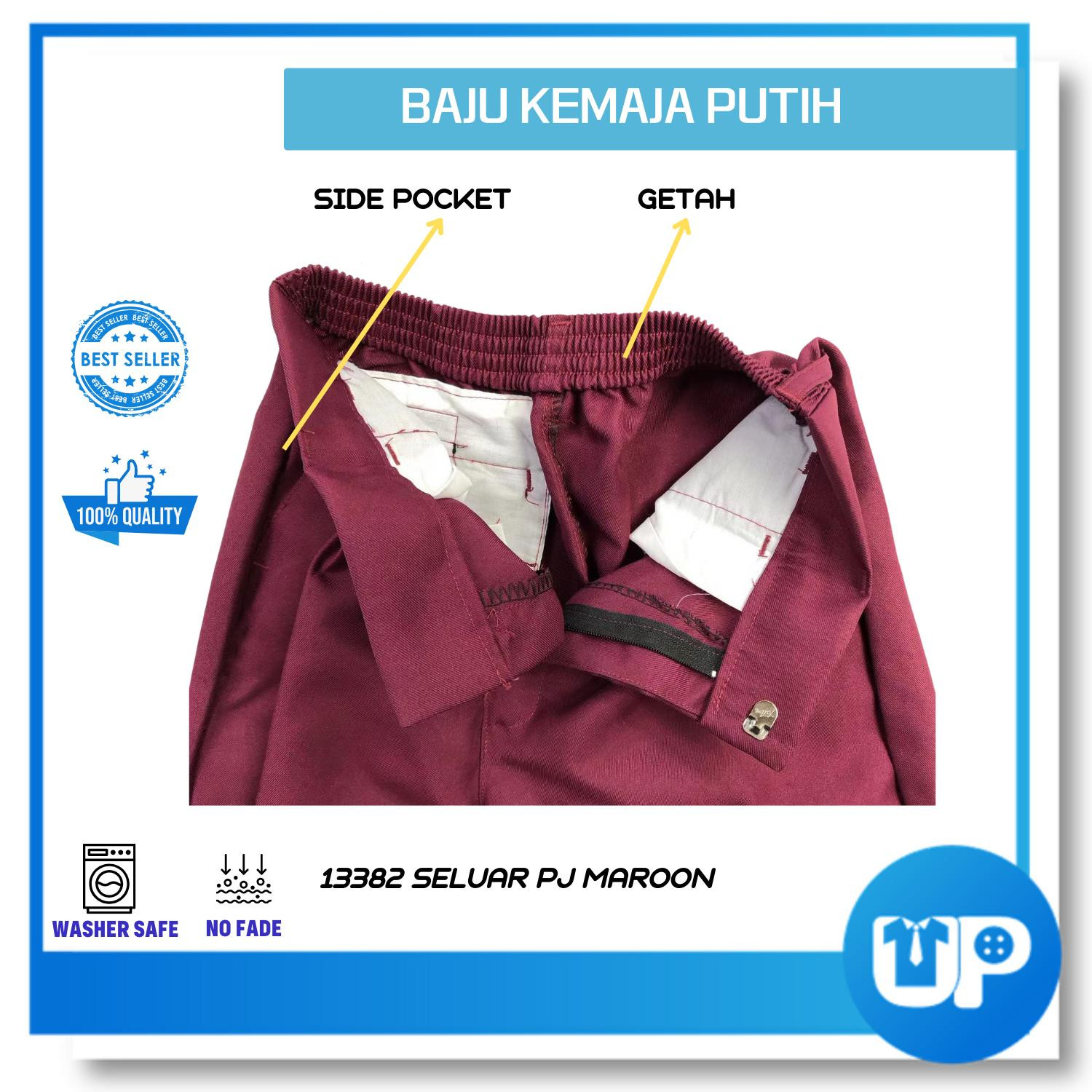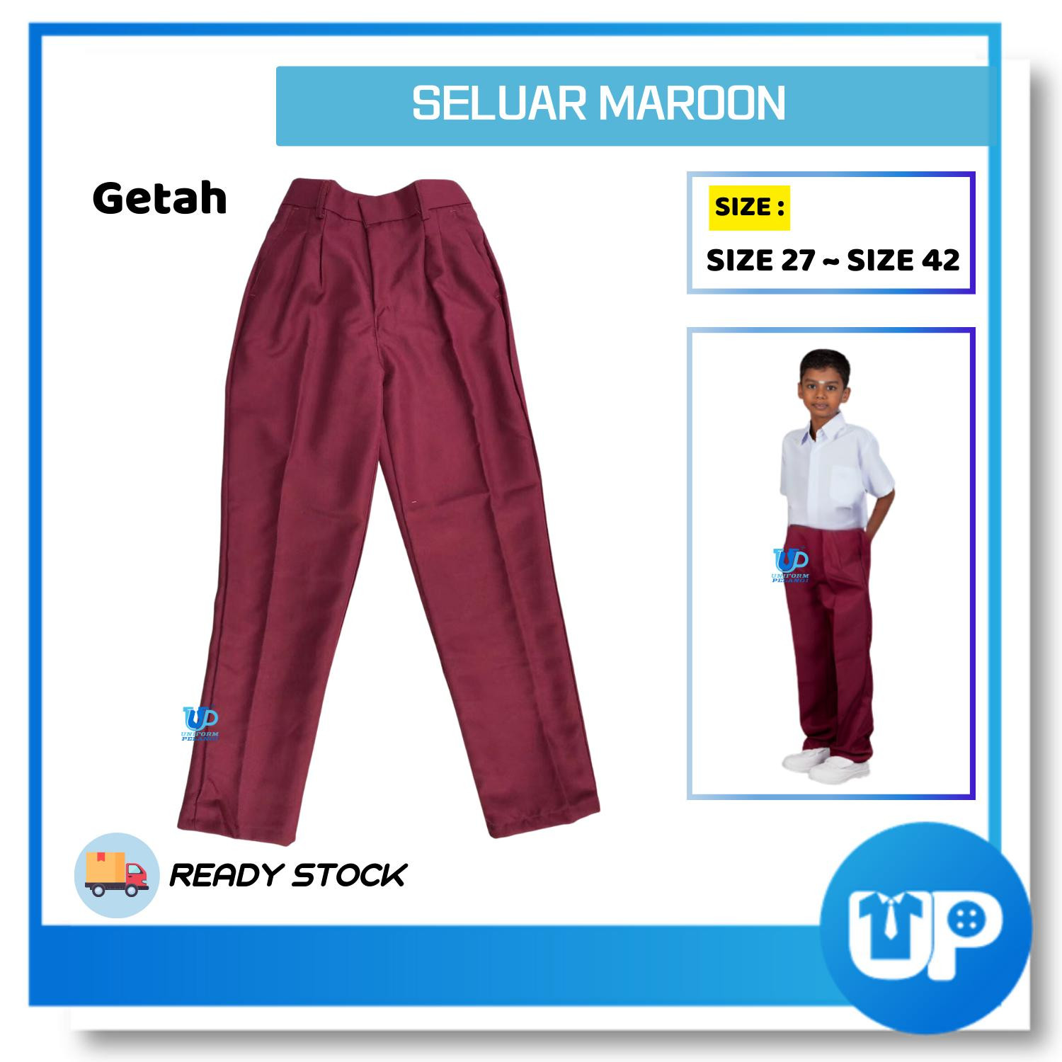 Seluar Maroon Getah Seluar Sekolah Meroon Gelap Panjang Rendah/Menengah Maroon Long Pant
